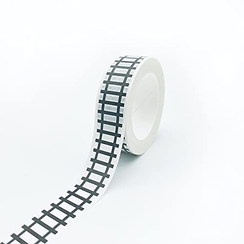 YUBX Railway Road Washi Tape Set di 4 rotoli di nastro adesivo decorativo bianco e nero per lavori artistici, fai da te, diari di proiettile, pianificatori, album di ritagli, confezioni (15 mm x 10 m)