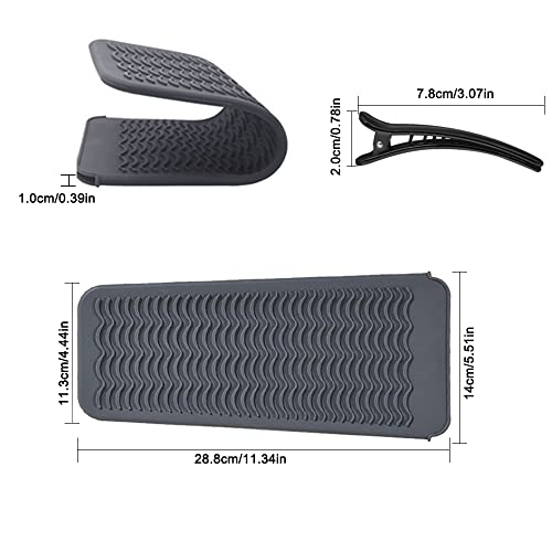 Contenuto della confezione: 1 tappetino in silicone nero resistente al calore, 6 clip, utile kit di strumenti per piastra per capelli.