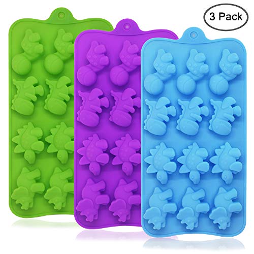 Confezione da 3 stampi per cioccolatini a forma di dinosauro, dimensioni: 9,1 x 10,9 x 1,8 cm, dimensioni cavità: 1 x 1 x 1,8 cm