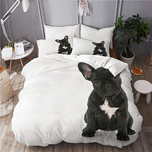 YUDILINSA Copripiumino Set Trapunta Federa,Bulldog Francese del Cucciolo Che Si siede esaminando visore con la riflessione sul Cane Bianco,200 x 200 cm