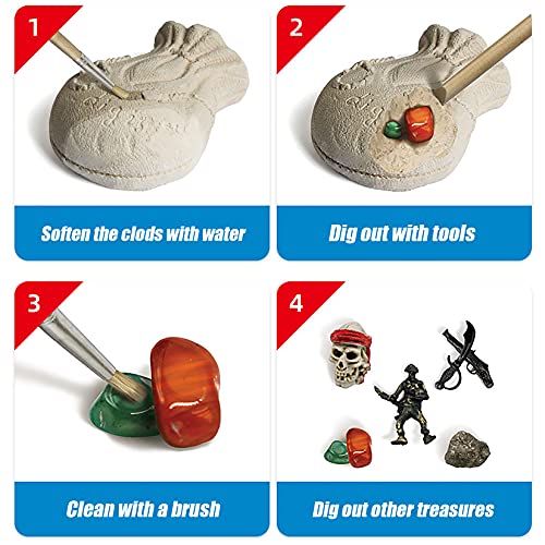 YUDIZWS 5 in 1 Kit di Scavare Tesoro, Scavo Ed Esplorazione di Varie Gemme, Fossili E Minerali, Kit di Scienze STEM Educativo, Regalo Significativo per Gli Appassionati di Scavo,Pirate Treasures