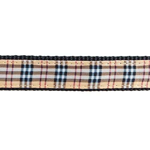 YUDOTE - Collare regolabile per cani in nylon nero con motivo scozzese, nastro Begie per cuccioli, collo di cani di piccola taglia 25-38 cm