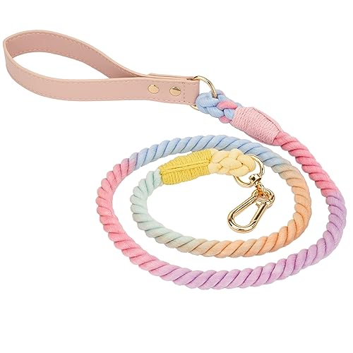 YUDOTE Guinzaglio per cani in corda di cotone naturale, tinto a mano, resistente, con morbido manico in pelle conciata al veterinario, 1,2 x 120 cm, colori macaron