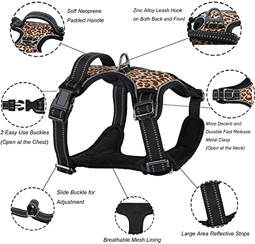 Incredibile sistema di montaggio a 3 fibbie: la nostra imbracatura leopardata riflettente senza soffocamento è super facile da mettere e togliere. Non c'è bisogno di passare attraverso la testa del cane perché aggiungiamo una fibbia in metallo a sgancio rapido, che è più resistente ed elegante rispetto alle normali fibbie in plastica. 2 fibbie a sgancio rapido sulle cinghie per pancia