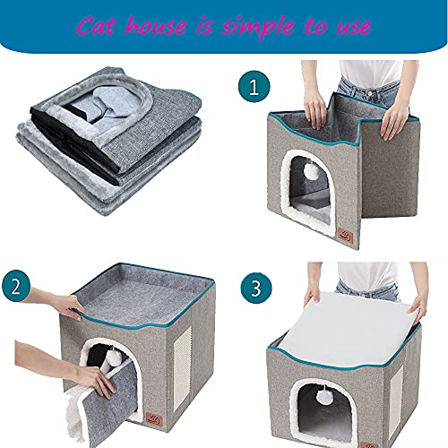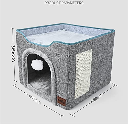 YUDOXN Cuccia per gatti e cani piccoli, Casa pieghevole con terrazza, palla morbida da appendere e grattare, grigio (Large)