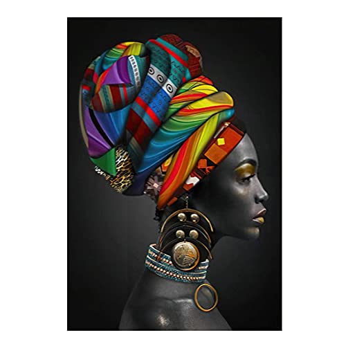 Yuefa Art Quadri d'arte Donna africana Dipinto su tela Donne dorate e nere Poster e stampe Decorazioni da parete scandinave Design per la casa 30x50 cm (12x20 pollici) Senza cornice