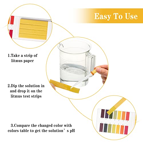 Facile da usare: Devi solo strappare la cartine tornasole pH quando la usi, far cadere una goccia di soluzione di prova sulla carta di prova e confrontare il colore della soluzione e la carta di prova con il colore della carta di prova per determinare il valore del pH.