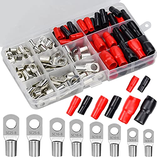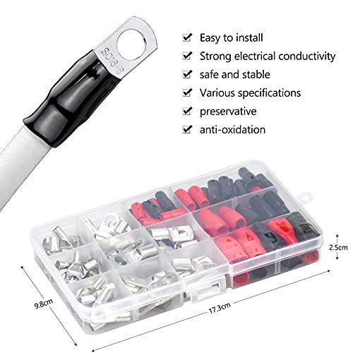 La confezione include: in questo set di prodotti, forniamo 8 tipi di terminali ad anello terminale freddo SC6, SC10, SC16, SC25 awg, per un totale di 60, 4 tipi di coperture isolanti per scarpe terminali della batteria, per un totale di 60, per soddisfare le vostre diverse esigenze quotidiane.