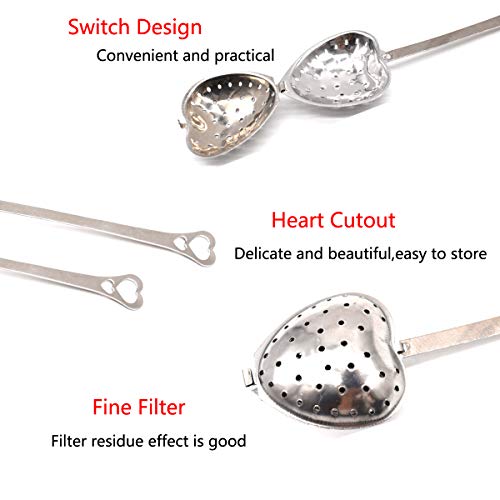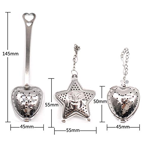 ❤ 【Diversi stili】 Filtro da tè a forma di stella e cuore in acciaio inossidabile. Colino da tè con manico lungo e catena. Diversi stili di colini da tè per diversi infusori da tè.