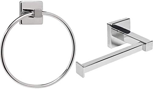 Il set di portarotolo quadrato cromato e porta asciugamani aggiunge brillantezza a qualsiasi bagno.