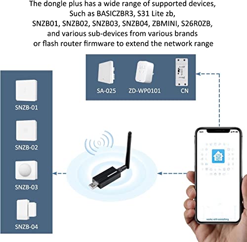 Il dongle plus ha una vasta gamma di dispositivi supportati, come BASICZBR3, S31 Lite zb, SNZB01, SNZB02, SNZB03, SNZB04, ZBMINI, S26R2ZB, e vari sub-dispositivi di varie marche o firmware del router flash per estendere la gamma di rete.