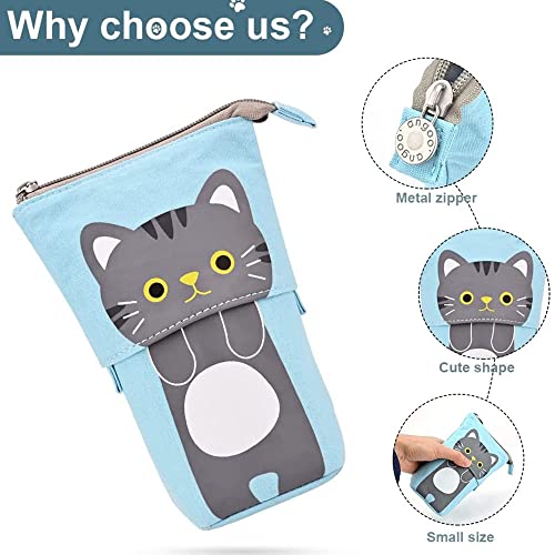 Yufana Astuccio Gatti Telescopico Canvas Bag,Sacchetti Matita Telescopici Tela Astuccio Telescopico Carino Gatto Astuccio Portapenne Matita Borsa Telescopico In Piedi,per Ragazzo Ragazze Bambini(Blu)