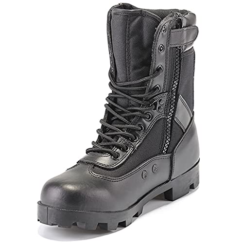 YUHAI Stivali Militari Traspiranti da Uomo, Stivali Tattici del Deserto all'aperto in Pelle, Stivali da Combattimento, con Cerniera Laterale,Black-41(UK 8)