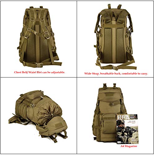 YUHAN Zaino tattico da 60 l, zaino da trekking militare militare, S419, Nero, L