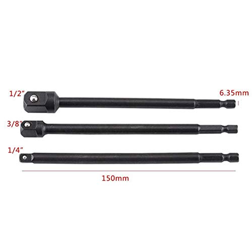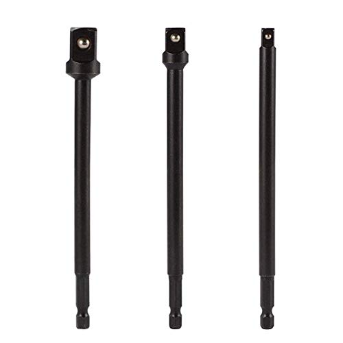 Yuhtech Adattatore per chiave a bussola, 3 pezzi, 150 mm, codolo esagonale a quadrato, set di punte da trapano da 1/4", 3/8", 1/2", adattatori per cacciavite elettrico