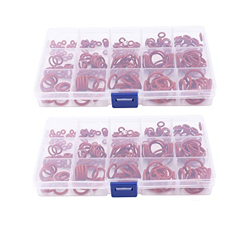 Yuhtech Silicone Kit O-Ring, 450 Pcs 15 Dimensioni Rosso Set di Guarnizioni Universali in Silicone per Tubature, Auto, Riparazione Generale