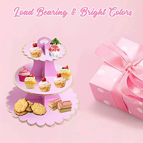 YUIP 2 Pezzi Alzata per Cupcake in Cartone Rosa,Torre per Dessert a 3 Piani e 1Tier Cake Stand per Festa di Compleanno, Matrimonio, Baby Show, Compleanni, Feste