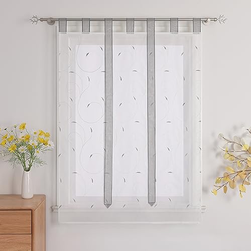 Yujiao Mao 1 tenda a pacchetto in voile con passanti e ricamo, colore argento, larghezza x altezza circa 100 x 140 cm