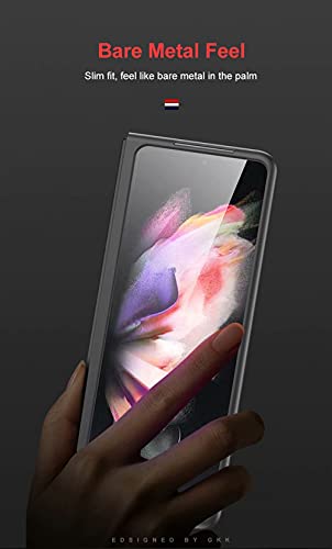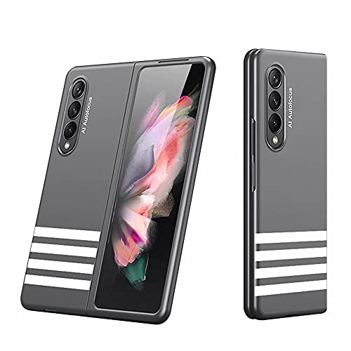 YukeTop Custodia per Samsung Galaxy Z Fold 3 Coque, protezione tutto compreso, PC duro, anti-caduta, antiurto, custodia per Samsung Galaxy Z Fold 3. Grigio-barre bianche