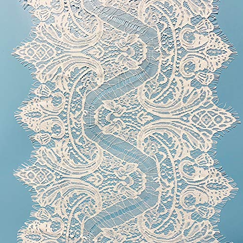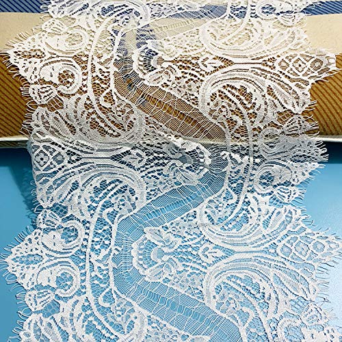 Yulakes, 3 metri di nastro in pizzo africano per il fai da te, senza elastico, accessorio per ricamo, colore: bianco e nero, per lavori di cucito fai da te, decorazione 35 cm (bianco)