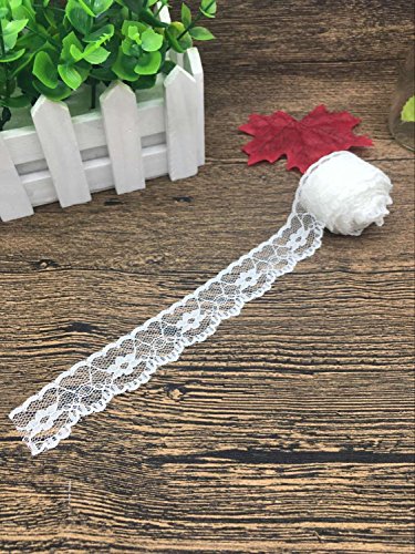 Yulakes, nastro in pizzo floreale con perline, elasticizzato, nastro in pizzo intrecciato per decorazioni da matrimonio, per fiocchi decorativi, per artigianato, 9,1 m x 2 cm (l x h), bianco