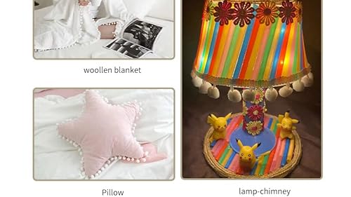 Ampio utilizzo: puoi anche attaccare il nastro con pompon ai tuoi progetti di bricolage. Prova ad applicare il rivestimento del pom-pom-pom-pom a paralumi, tende, accessori per vestiti per animali domestici, decorazioni per la casa, scrapbooking, finestre e molto altro ancora.