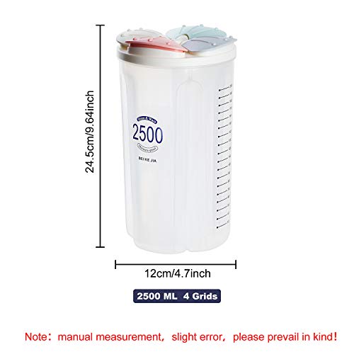Yulang 4 Griglie Contenitori per Alimenti, 2500ML Griglie Multiple Barattoli in Plastica Trasparente, Barattolo di Stoccaggio, Senza BPA, per Cereali Avena Pasta caffè Snack (4 Griglie 2500ML)