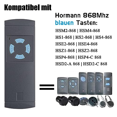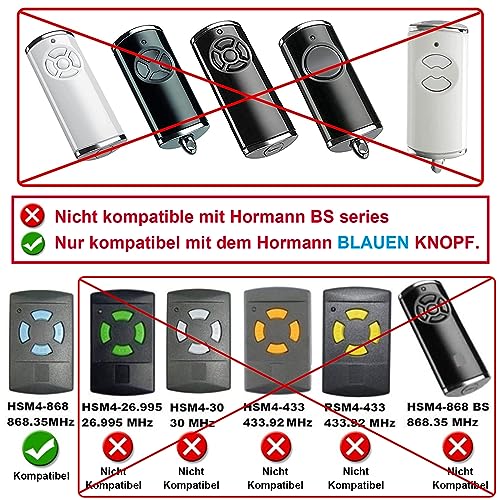 Compatibile solo con i telecomandi Hormann 868 Mhz con tasto BLU. Non compatibile con Hormann serie BS. NON funziona per altre marche, colori dei pulsanti, modelli e frequenze.