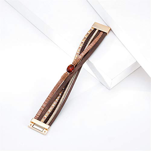 Yulitigy Bracciale avvolgente con polsini in pelle multistrato Gioielli intrecciati bohémien per le donne