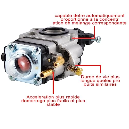 YULLING Kit Carburatore per motore decespugliatore 43cc 49cc 52cc, carburatore con guarnizione, tubo, candela di accensione e filtro per benzina