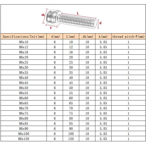 Yuluo Chiodi Viti a Brugola - Acciaio Inossidabile Cilindrico Viti a Macchina Ferramenta Elementi di Fissaggio Utensili Bulloni a Testa Esagonale M6