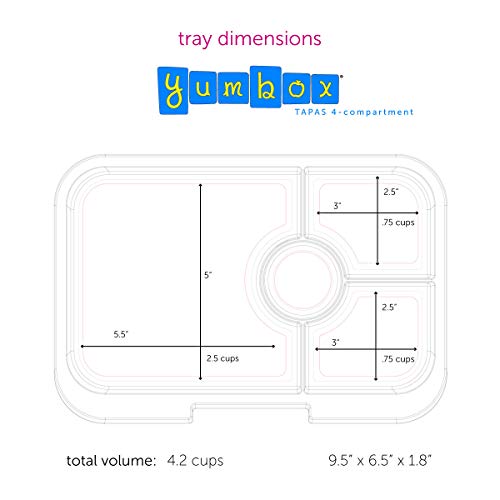 I vassoi per il pranzo e i tapas da 4 sono intercambiabili a seconda delle necessità: attenzione! Gli inserti della scatola per tapas non sono compatibili con le scatole per il pranzo originali Yumbox o Panino.