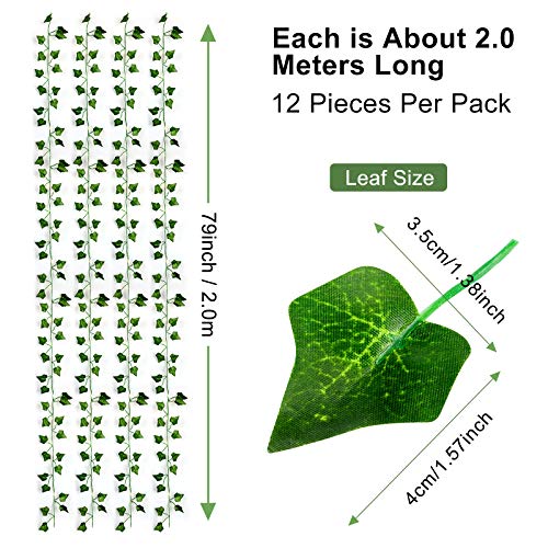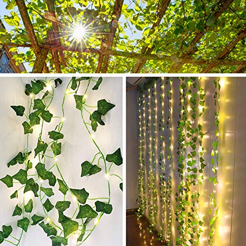 Yumcute Artificiale Edera 12 Pezzi Pianta Artificiale Rampicante Ghirlanda Esterne,Edera Rampicante Anti-ultravioletti con Stringa luce LED,per Casa Cucina Giardino Festa Matrimonio Decorazioneparete