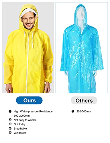 Portatili ma riutilizzabili: a differenza dei tradizionali impermeabili usa e getta, i nostri cappotti impermeabili non sono solo ad asciugatura rapida, ma possono anche essere riciclati per un lungo periodo di tempo. Durevole, antistrappo, impermeabile e traspirante. Pieghevole in piccole dimensioni, conservalo in caso di emergenza nello zaino, casa, ufficio o in auto.