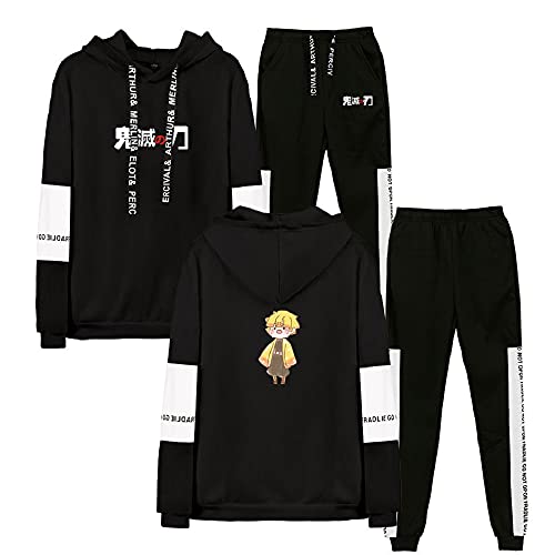 Yumenam Unisex Tuta da Ginnastica Kamado Tanjirou Nezuko 3D Stampato Manica Lunga Felpa con Cappuccio + Pantaloni Jogging 2pcs Casuale Tuta Cosplay Sportswear per Anime Fans