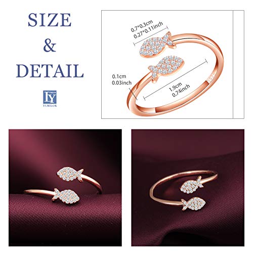 ★Materiale:Anello aperto in argento sterling S925 con due anelli di dimensioni regolabili circondati da pesci