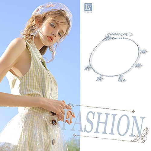 Yumilok - Cavigliera da donna, in argento 925, con zirconi intarsiati, elegante cavigliera regolabile in argento