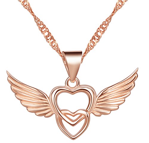 Yumilok, collana in argento Sterling 925 con ciondolo a forma di cuori intrecciati con ali d'angelo, per donne e ragazze e Argento, colore: oro rosa, cod. Y30106-R