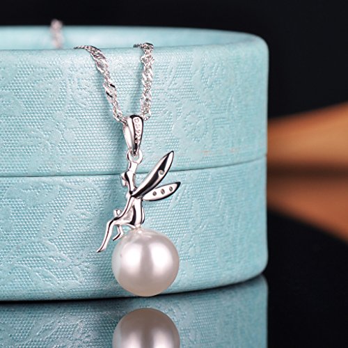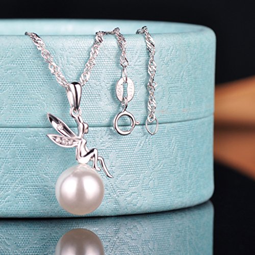 Yumilok - Collana con ciondolo a forma di angelo in argento Sterling 925, con perla