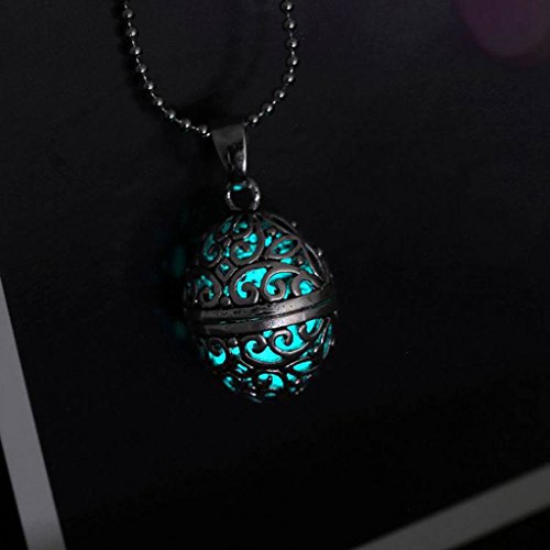 Yumilok - Collana con ciondolo a forma di sfera magica che si illumina al buio, medaglione apribile in lega, per donne/ragazze/bambini, colore: blu fluorescente