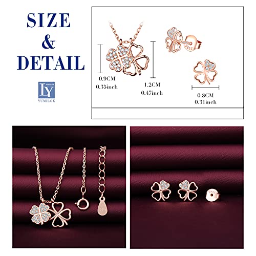 Yumilok-Collane in argento Sterling 925 Orecchini da donna Collane con cuore ritagliato Trifoglio portafortuna e orecchini con zirconi