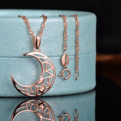 Yumilok - Collane da donna e ragazza, in argento Sterling S925, con ciondolo a forma di luna, in oro rosa, lunghezza regolabile