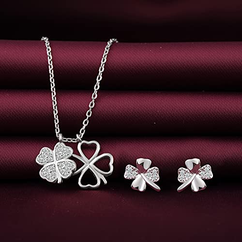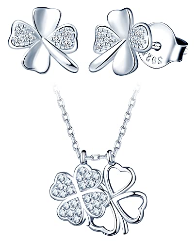 Yumilok Collane da donne Collana con trifoglio fortunato S925 Orecchini a perno in argento sterling, orecchini a perno con set di zirconi Collane con cuore scavato Misura regolabile
