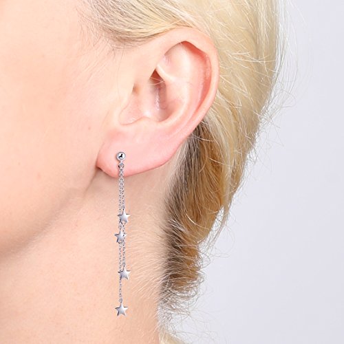 Yumilok, orecchini pendenti con stelle in argento sterling 925, ipoallergenici, per donne e ragazze-