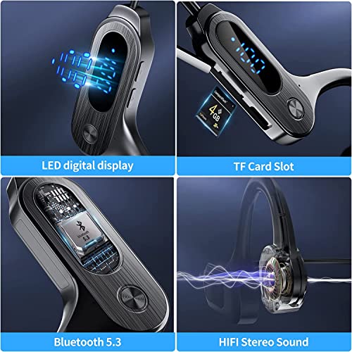YUMMIN Cuffie a conduzione ossea Sport Open Ear Wireless Bluetooth Cuffie con microfono, LED Power Display TF Card Slot Saldatura Cuffie Bluetooth 5.3 per Corsa, Palestra, Escursioni