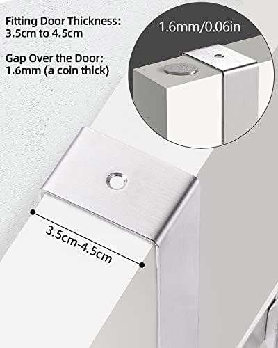 Dimensioni porta universale: appendiabiti da 45 mm, si adatta a quasi tutte le porte standard fino a 4,5 cm di spessore, e per una migliore esperienza di utilizzo, si consiglia di spessore della porta: da 3,5 cm a 4,5 cm, l'altezza dello spazio sopra la porta sarà di circa 1,6 mm (una moneta di spessore)
