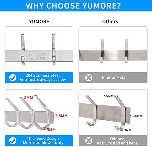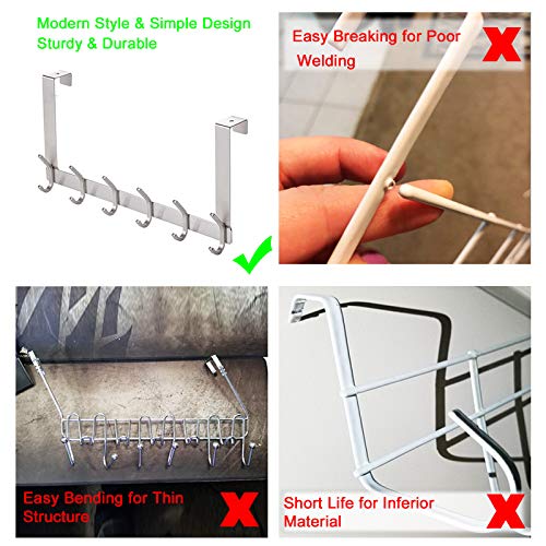 YUMORE Appendiabiti sopraporta,4,5cm Appendiabiti da Porta con 12 Ganci appendi cappotto Inox Attaccapanni Over Door Hooks per Giacche Borse Abiti Deposito