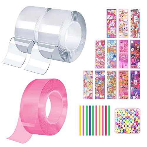 YumSur Nano Tape Bubbles | Traceless Adhesive Nano Tape for Making Bubbles | Multipurpose Trasparente Poster Tape Handmade Decompressione Glitter and Straw Design