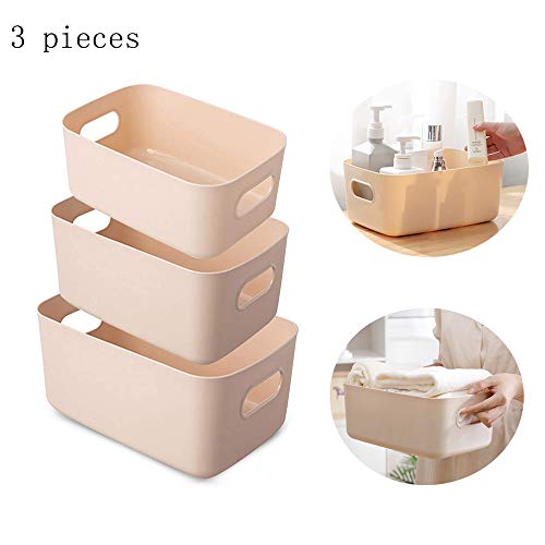 YUMUL 3 Pezzi Cestini Portaoggetti Studio, Cestini Portaoggetti Plastica, Cestini Portaoggetti Cosmetico, Scatola Immagazzinaggio, per Cucine, Bagni, Cosmetici, Camerette, Armadi