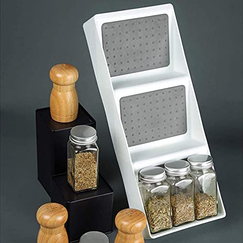 Design unico: la scatola di immagazzinaggio del cassetto della scatola delle spezie adotta un design del cassetto a tre strati con plastica antiscivolo integrata per impedire agli oggetti di scivolare e perdere, lasciando più spazio per organizzare gli oggetti.